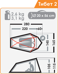 Масса палатки, кг (мин/макс): 2,6 / 3,1